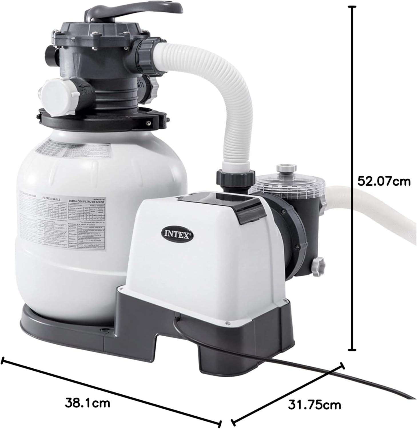 Système d’épuration au sable pour piscines jusqu’à 37 800 litres, capacité de filtration : 7 900 l/h, intègre le système Hydro Aeration System de Intex