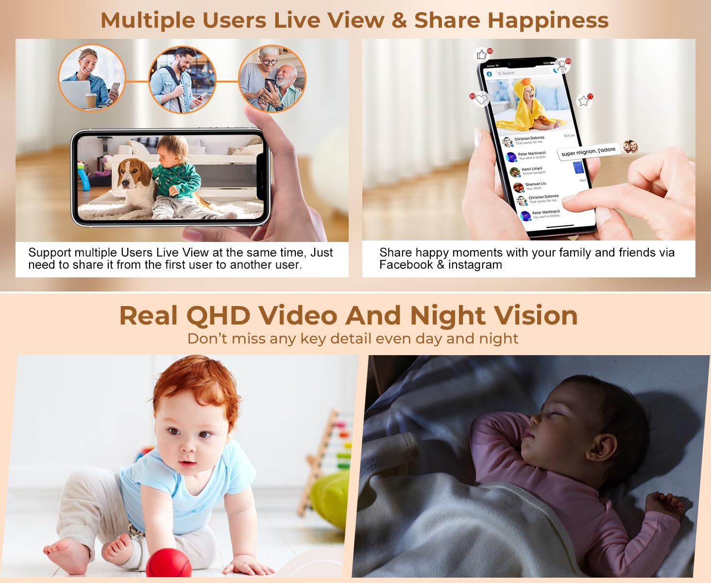 Le WOUWON Babyphone Caméra permet à plusieurs utilisateurs d’accéder à la caméra simultanément, ce qui est idéal pour les familles. Que ce soit pour les grands-parents, les nourrices ou d’autres membres de la famille, chacun peut se connecter facilement et profiter d’une tranquillité d’esprit collective.