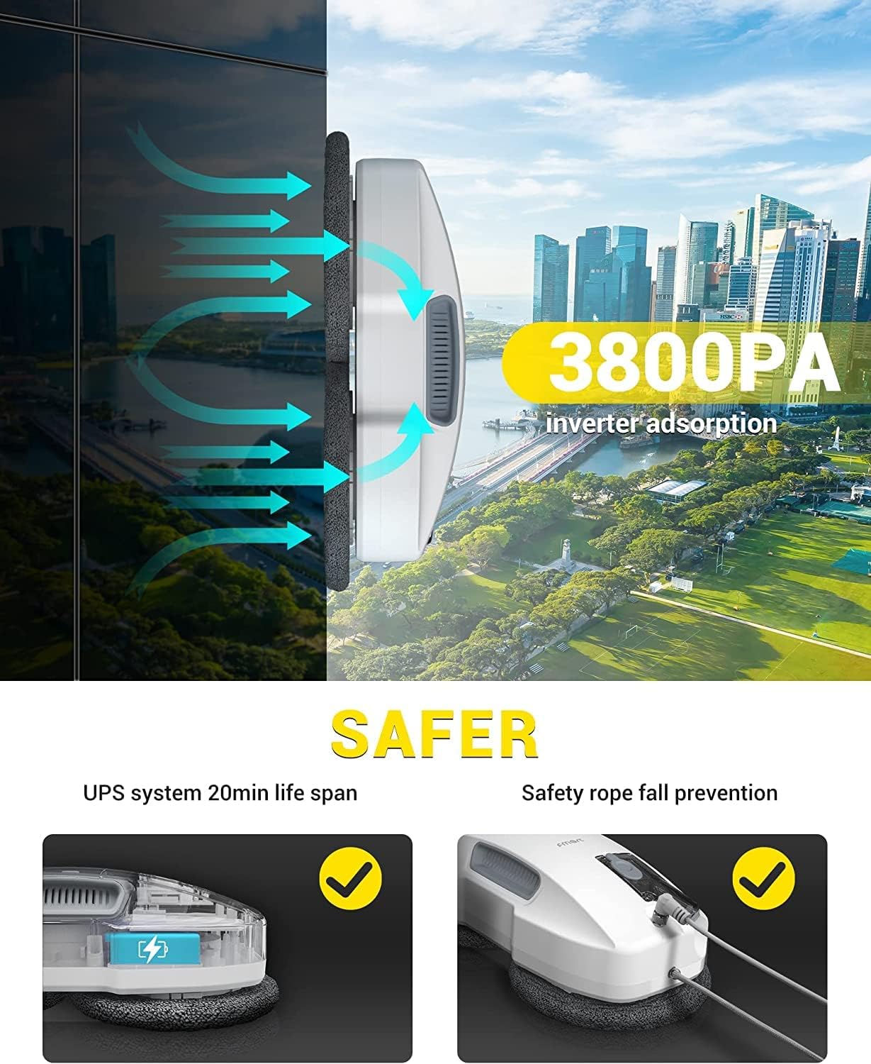 – 3800 Pa d’aspiration puissante : Ce robot laveur de vitre adapte automatiquement sa puissance d’aspiration en fonction du degré de saleté des surfaces. Dites adieu aux traces et bonjour à des fenêtres impeccables.