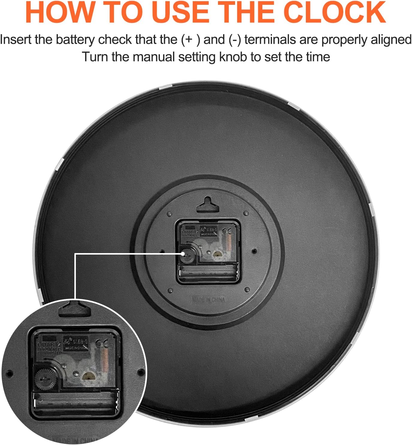 【Facile à installer】 L’horloge est simple à installer, il suffit d’installer la pile vous-même pour l’utiliser, il suffit d’équiper une section de pile AA (pile AA non incluse) Basculer le bouton pour régler l’heure manuellement et l’utiliser