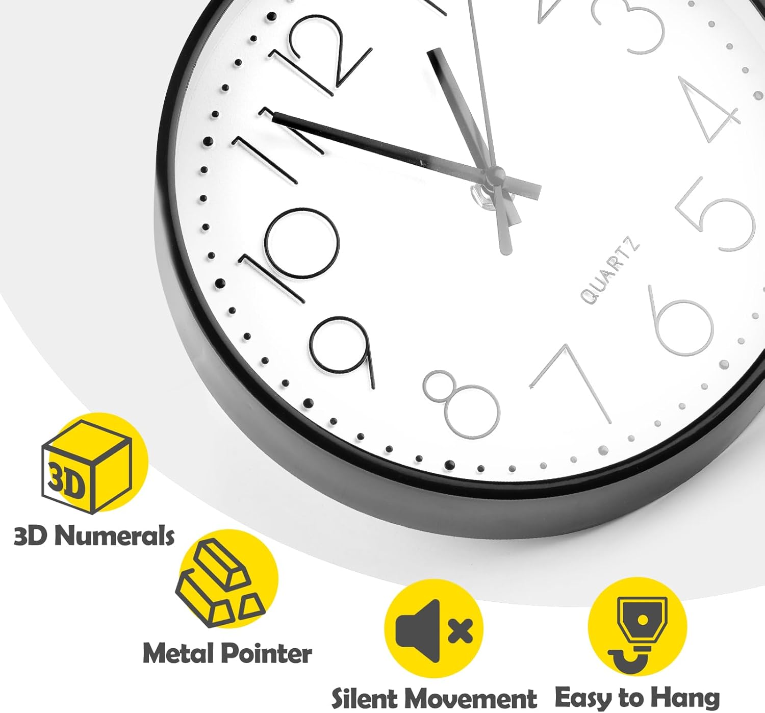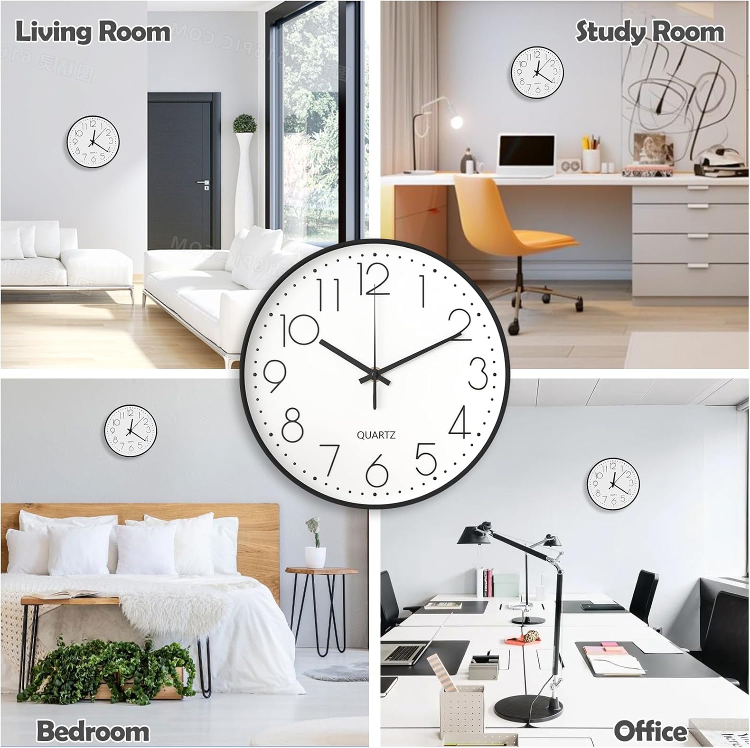 LARGE GAMME D’USAGES : Horloge silencieuse classique en noir et blanc, adaptée à tous les styles de décoration intérieure, un cadeau parfait pour votre salon, cuisine, bureau, école et autres décorations murales