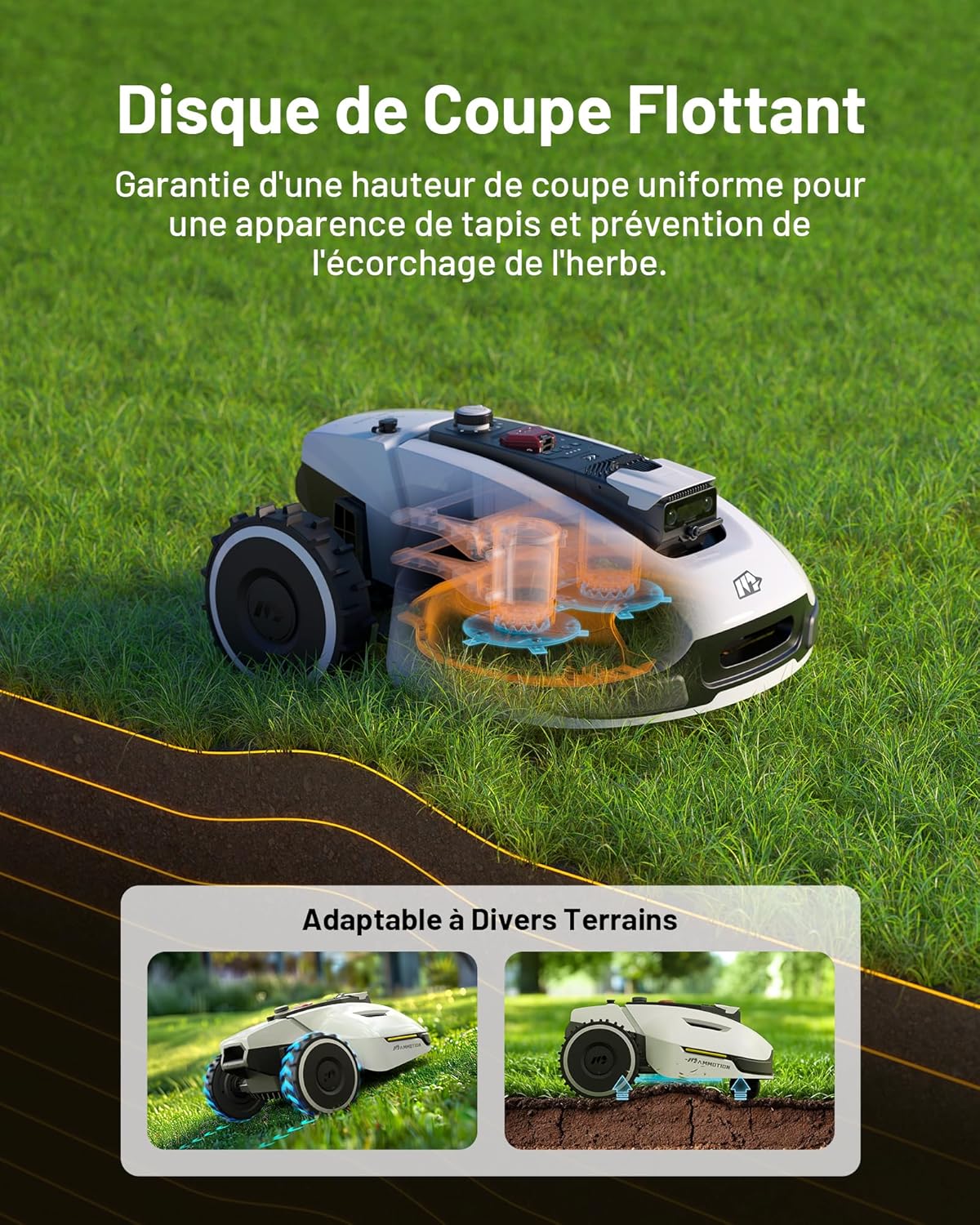 – S’adapte à tous les terrains : Capable de grimper des pentes de 45% (24°) sans accessoires supplémentaires, il est idéal pour les jardins en pente.