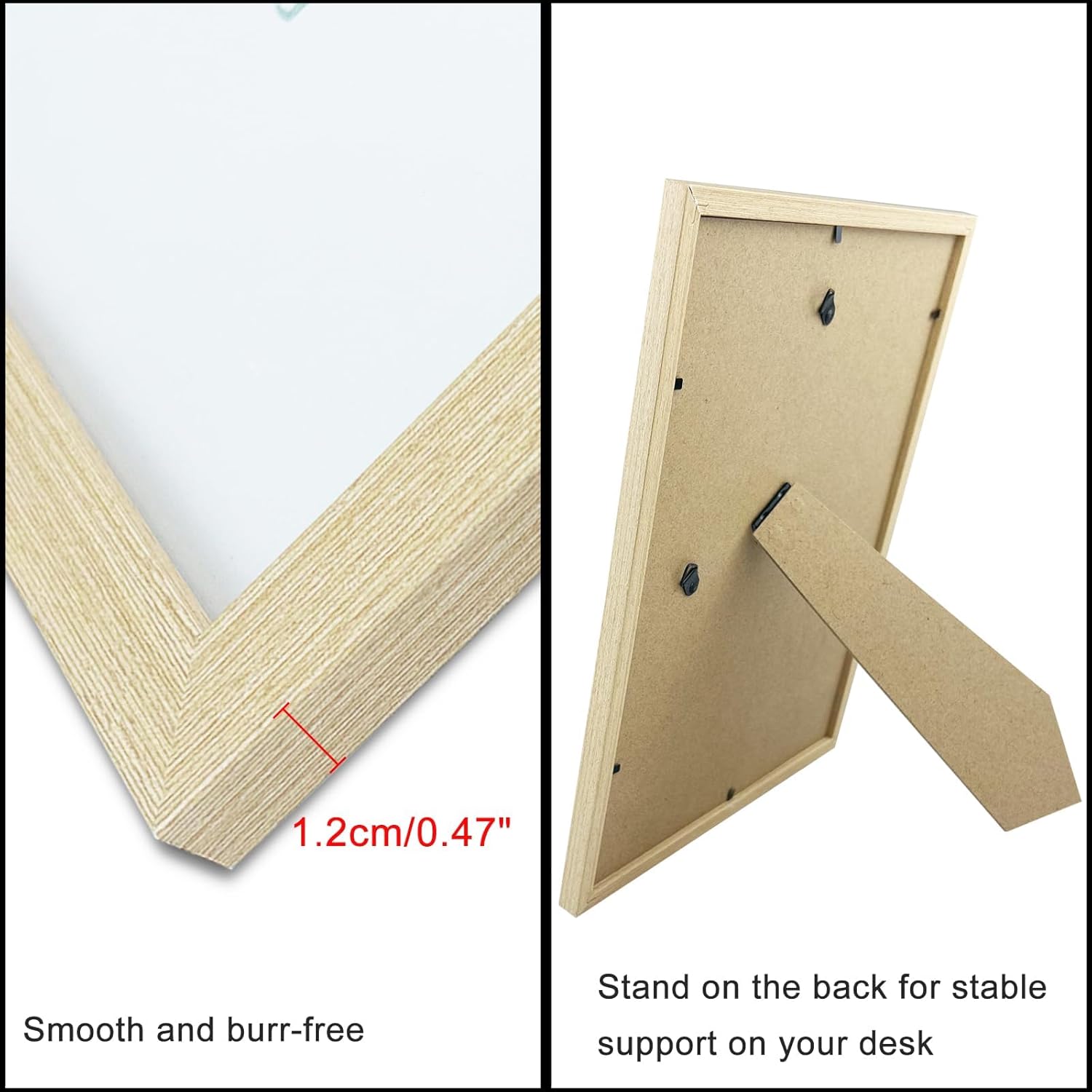 Convient à un large éventail de styles : Le cadre en bois a des lignes simples, une largeur de barre de cadre de 1,5 cm et une épaisseur de barre de cadre de 1,2 cm. Le cadre en bois de taille A4 convient à un large éventail de styles, tels que classique, moderne, minimaliste, familial, bohème, etc. (REMARQUE : il y a un film protecteur à l’extérieur du verre, veuillez retirer le film lors de l’utilisation.)