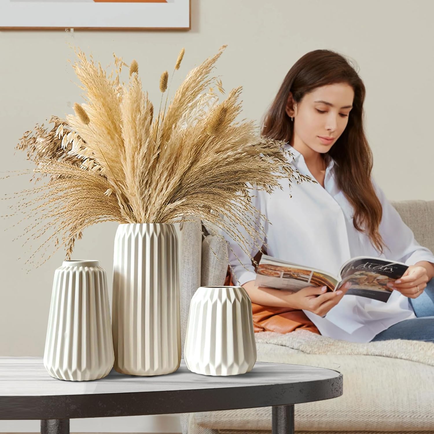 Transformez votre intérieur avec le Vase Décoratif – Set de 3 Vases en Céramique Blanche