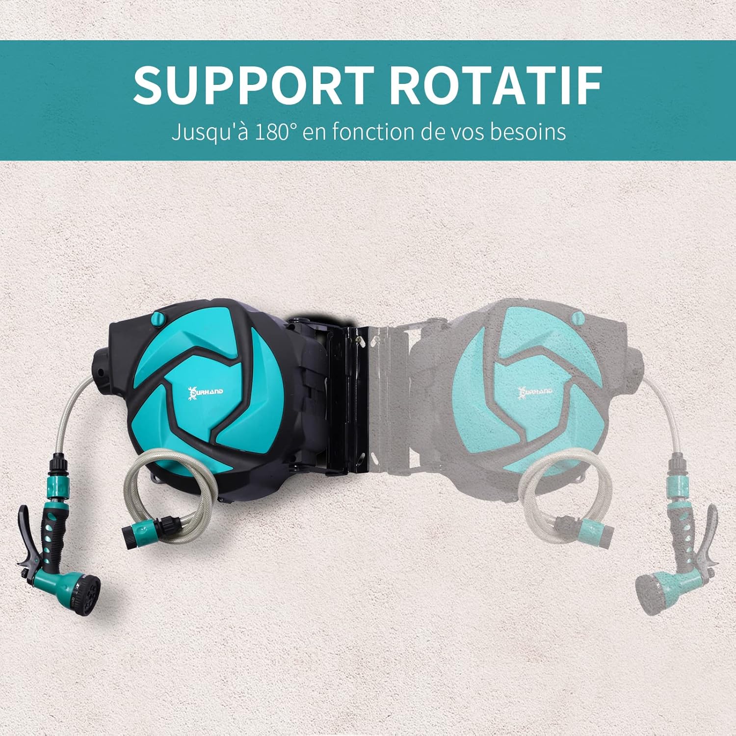 Ne laissez pas la corvée d’arrosage gâcher votre plaisir de jardiner. Optez pour le dévidoir mural enrouleur automatique pivotant 180° d’Outsunny. Avec ses fonctionnalités pratiques, sa durabilité et son efficacité, il représente un excellent investissement pour tous les amateurs de jardinage.