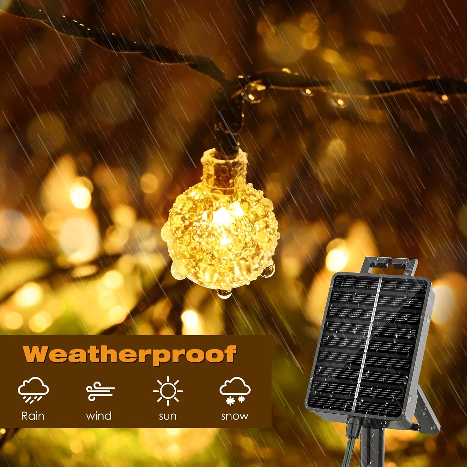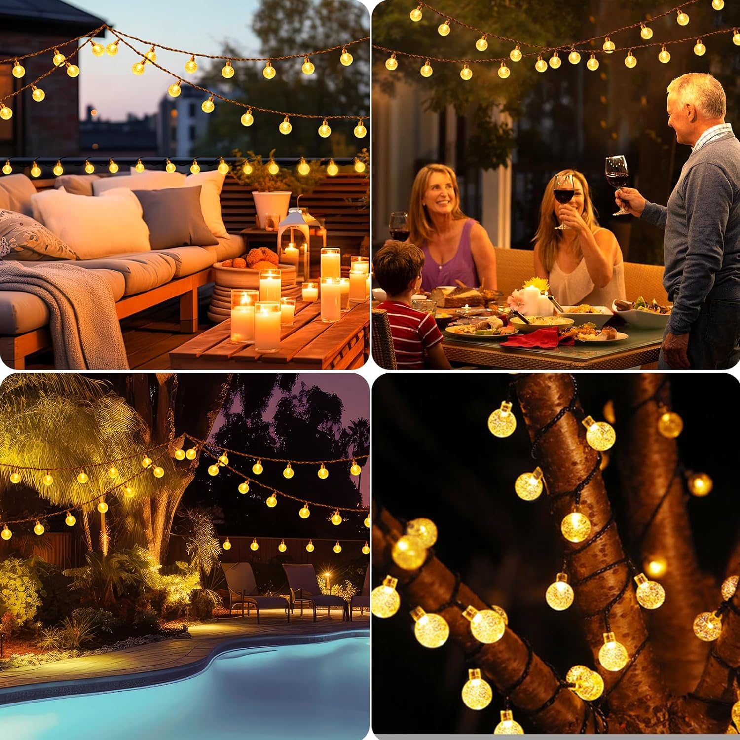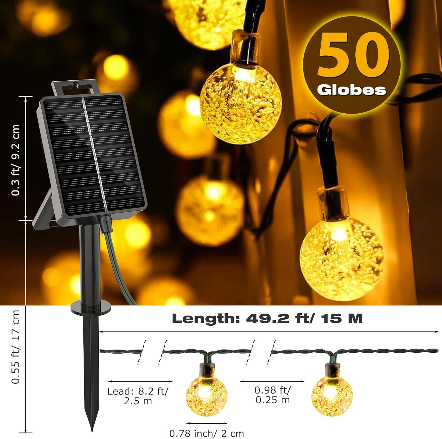 【Guirlande Exterieur Solaire】50LED de boules de cristal de haute qualité, 12,5m de chaîne d’éclairage et 2,5m de câble, la longueur totale est de 15m, parfait pour décorer le jardin, le patio, le gazebo, la terrasse, la pelouse, le bar, Noël, la fête, le mariage et ainsi de suite, il crée une atmosphère douce, romantique et chaleureuse