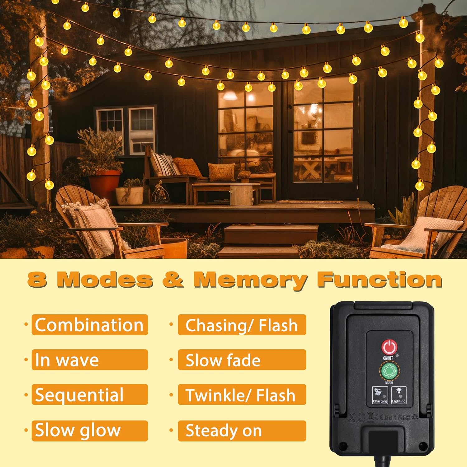 【8 Modes & Fonction Mémoire】La guirlande lumineuse solaire peut être réglée sur 8 modes d’éclairage différents et une fonction de mémoire unique, les modes incluent silencieux, luciole, vague, fondu, suivi, fondu lent, flash et fixe, adapté à la décoration de différentes occasions et festivals, toute opération avec mémoire de mode, peut répondre à vos différents besoins
